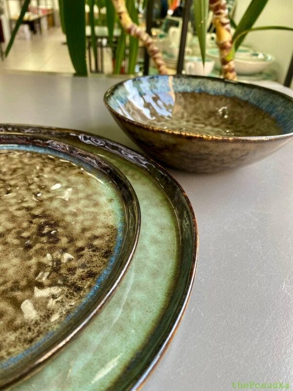 Семі-руст – набір із поєднанням тарілок різних форм та розмірів, що мають унікальний зелено-коричневий колір та підходять як і для щоденного використання, так і для святкових столів.