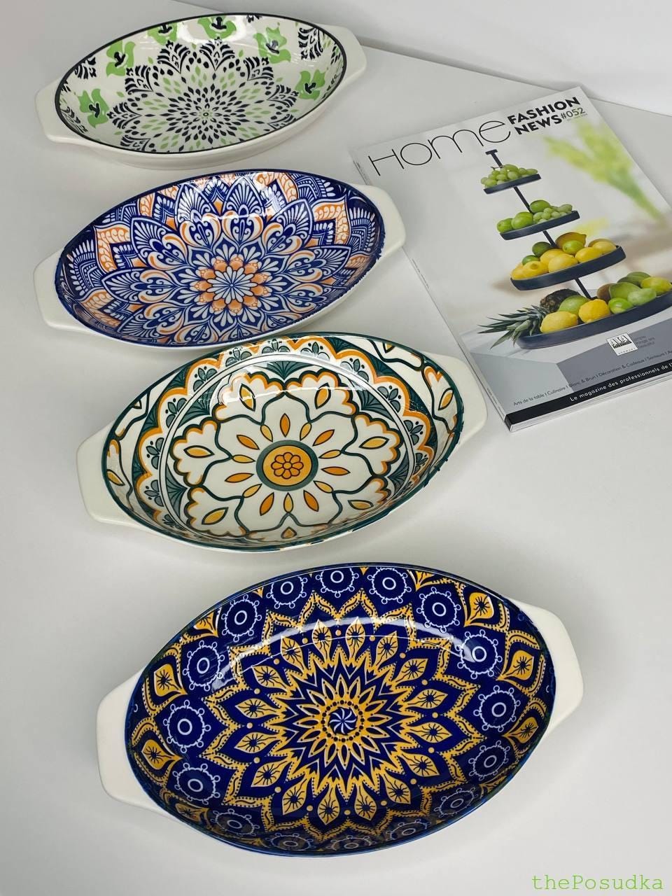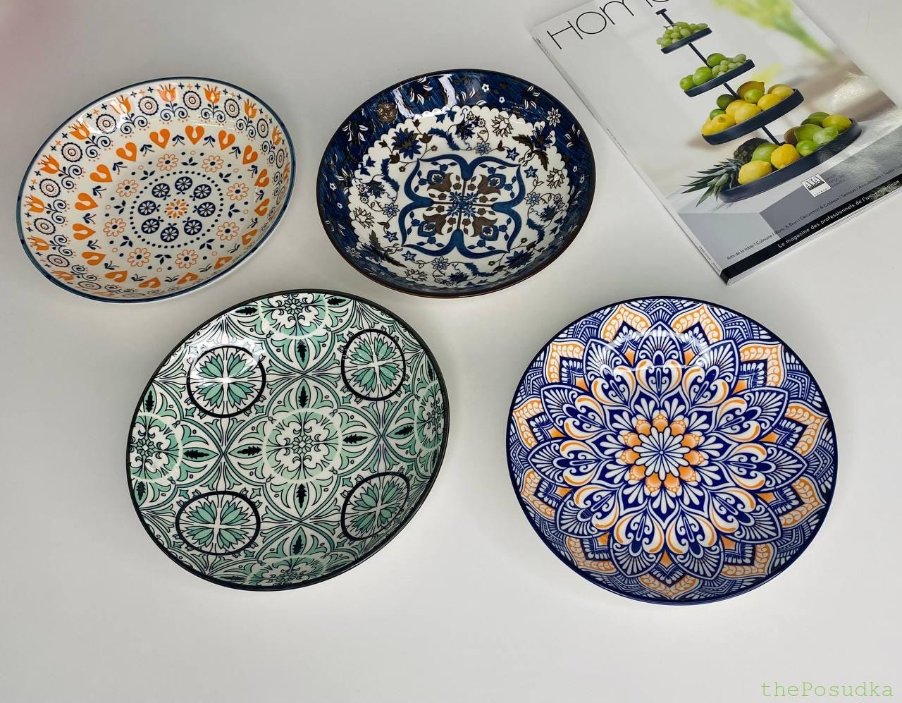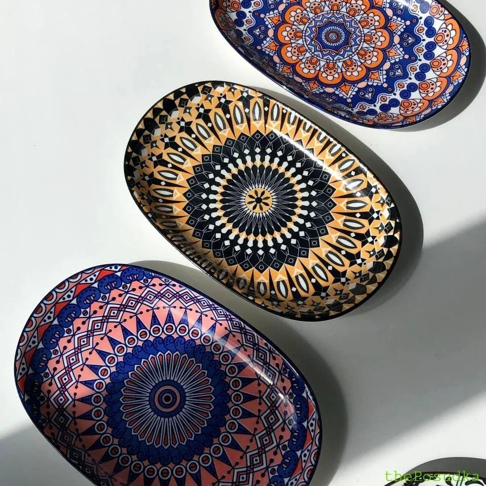 Отже, кожна тарілка із цієї колекції прикрашена цікавими орнаментами, які мають багато деталей та насичені кольори. Тригір’я перетворить ваш стіл в унікальний шедевр.