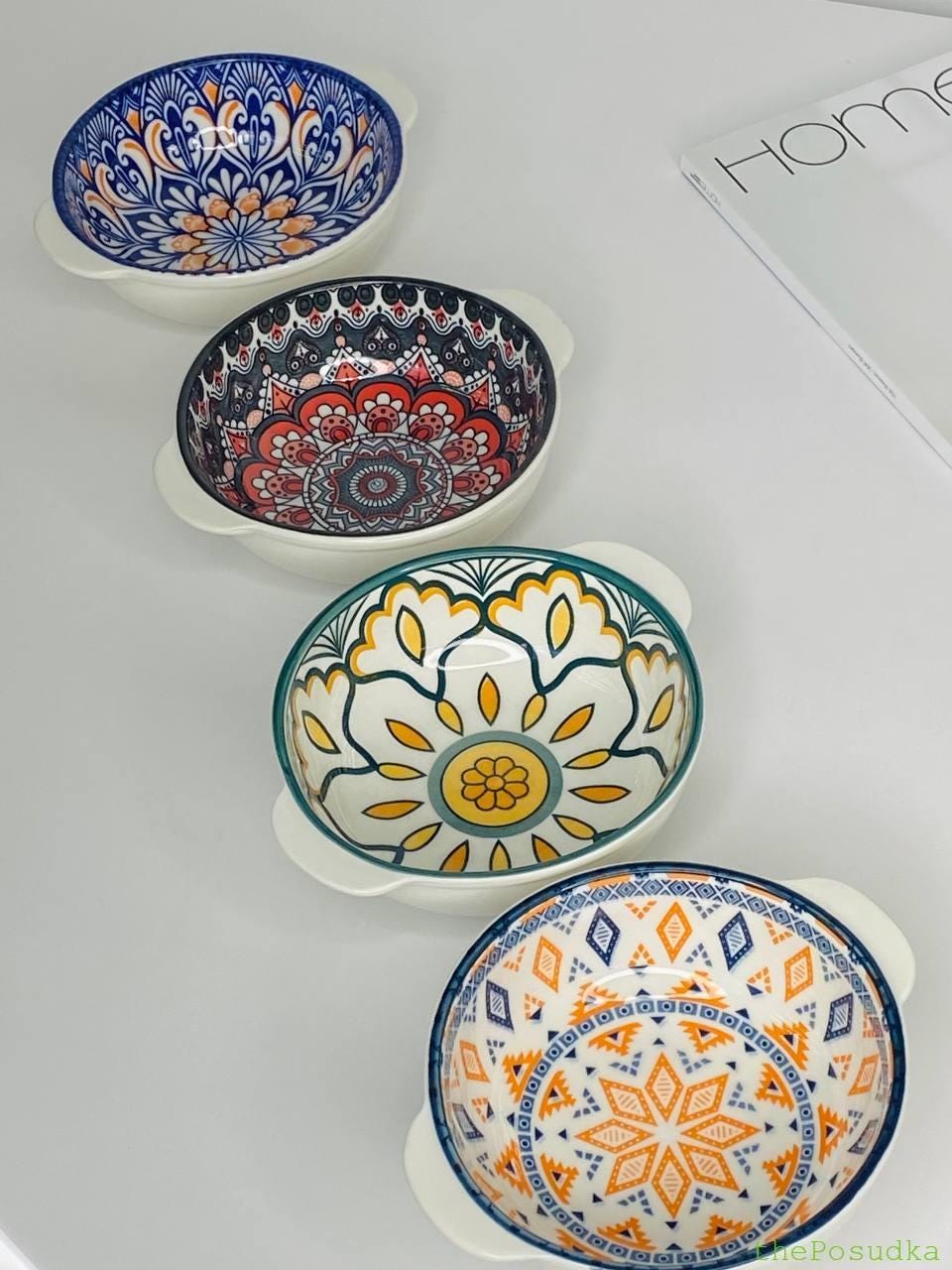 Набір глибоких тарілок з двома ручками 4 шт Olens “Тригір’я”, 350 мл